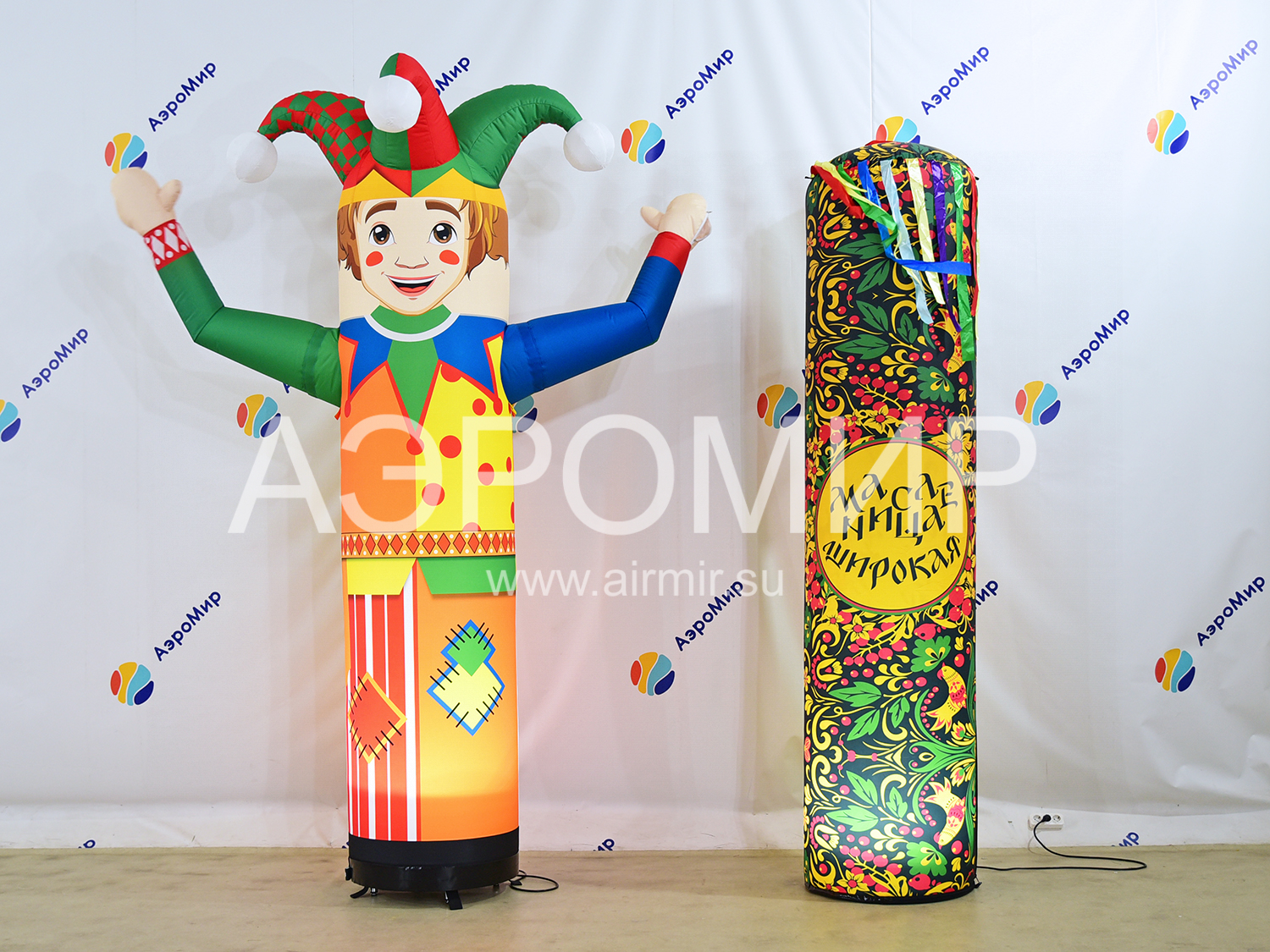 Установите напротив друг друга вентиляторы изделия, предварительно очистив площадку от мусора, колющих и режущих предметов. Выньте фигуру из чехла, разверните ее, держите аэромена в руках, чтобы не испачкать ткань.